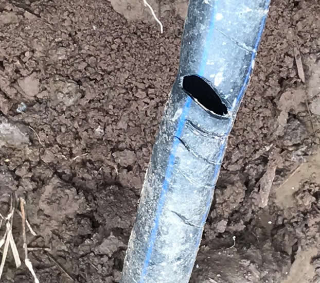 En la foto se muestra claramente, que quien realizó el acto de vandalismo, propició varios golpes al caño hasta conseguir hacerle un corte.